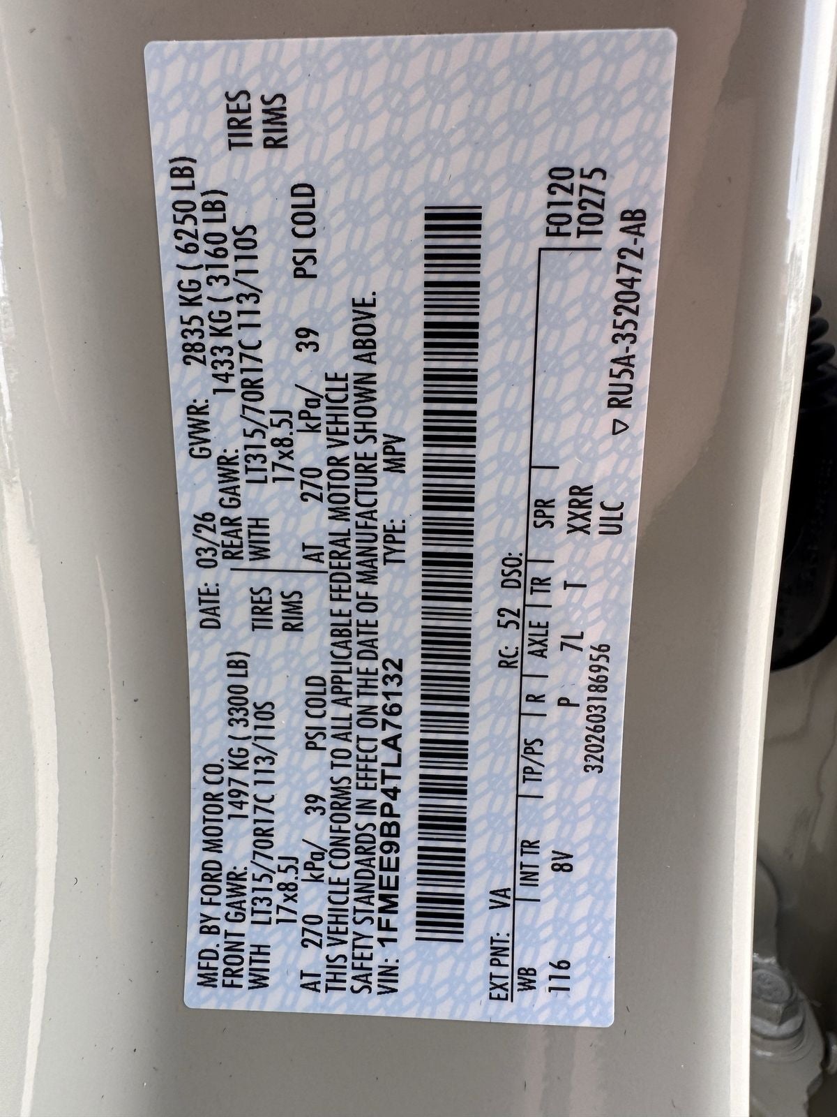 - Gross Axle Wt Rating - Front (lbs): 3270