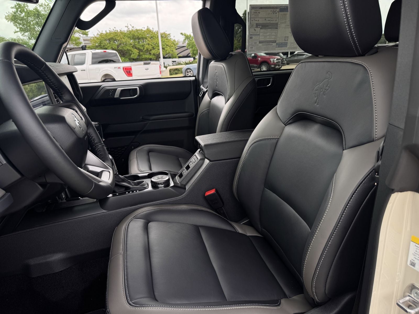 Exterior Features: 18 bright machined aluminum wheels, signature Bronco styling, heated power mirrors, auto high-beam headlights, fog lamps, integrated roll-over protection, and a rugged open-air SUV design.