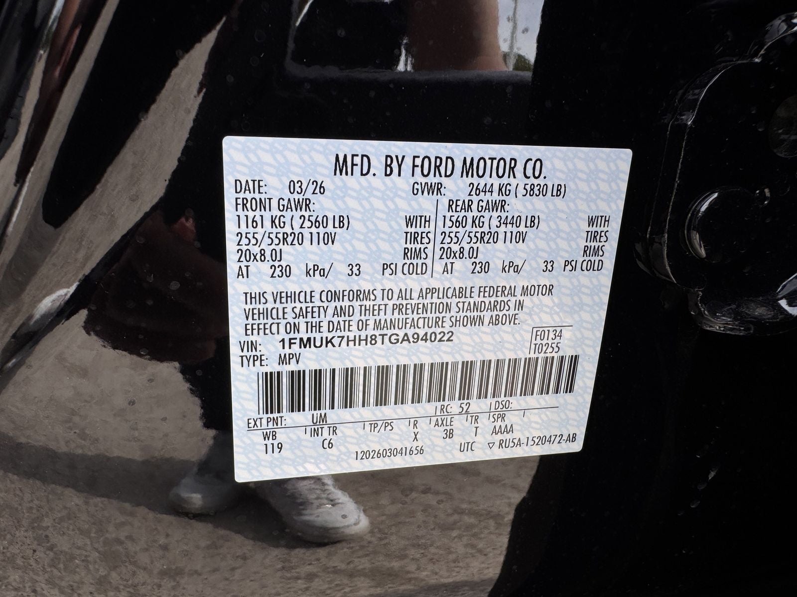 - Front Tire Size: P255/55VR20