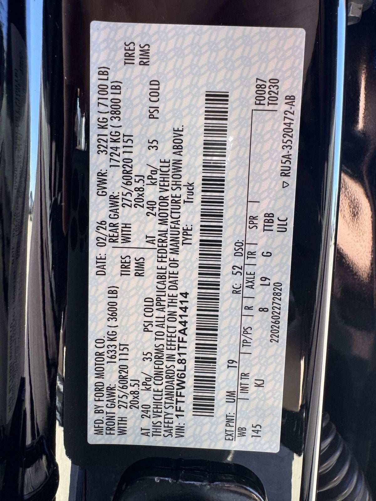 - Gross Vehicle Weight Rating Cap (lbs): 7100