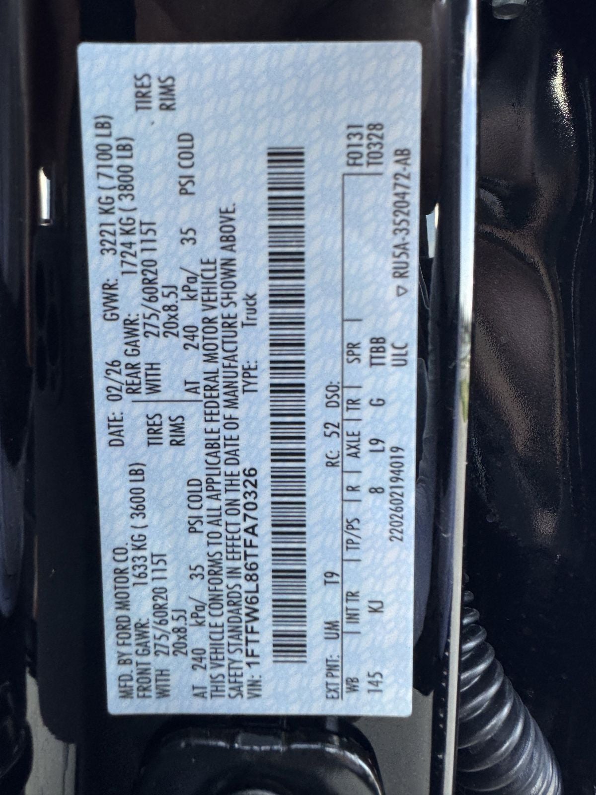 - Gross Vehicle Weight Rating Cap (lbs): 7100