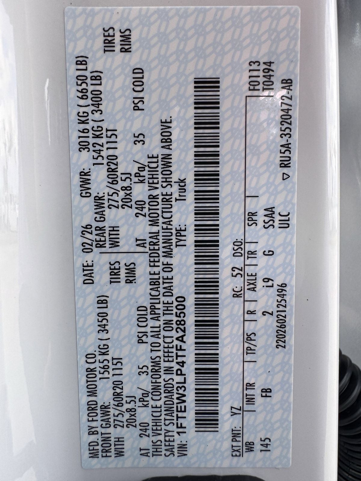 - Gross Vehicle Weight Rating Cap (lbs): 6650