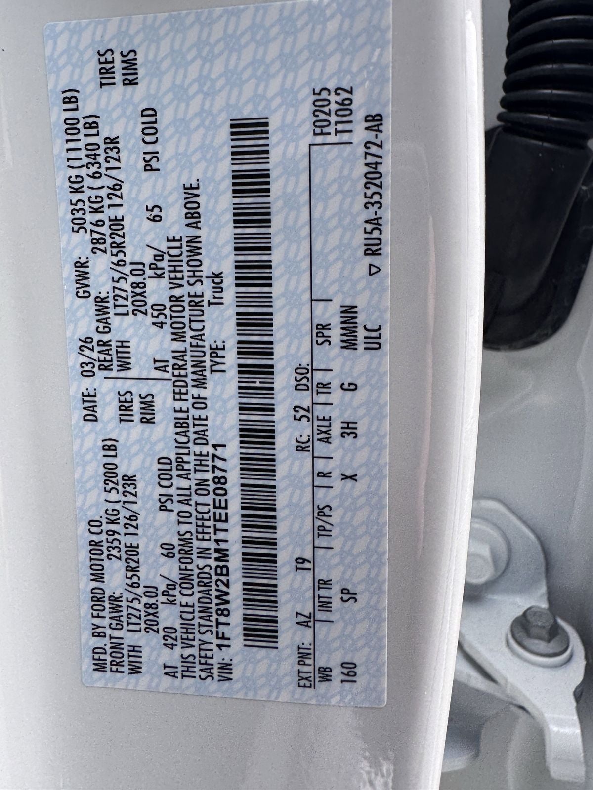 - Front Tire Size: LT275/65SR20