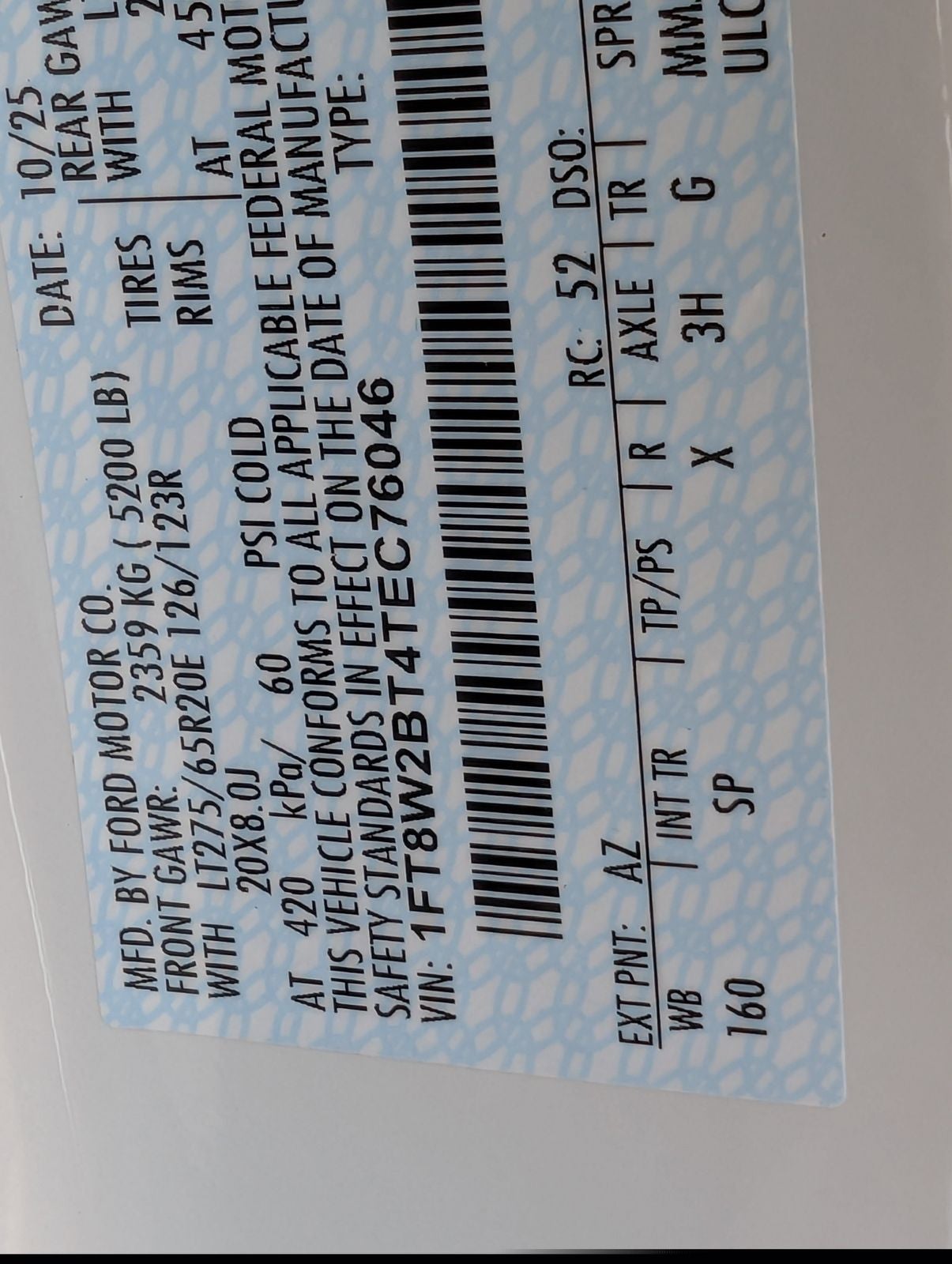 - Rear Tire Size: LT275/65SR20