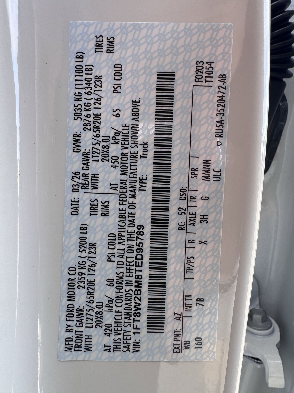 - Front Tire Size: LT275/65SR20