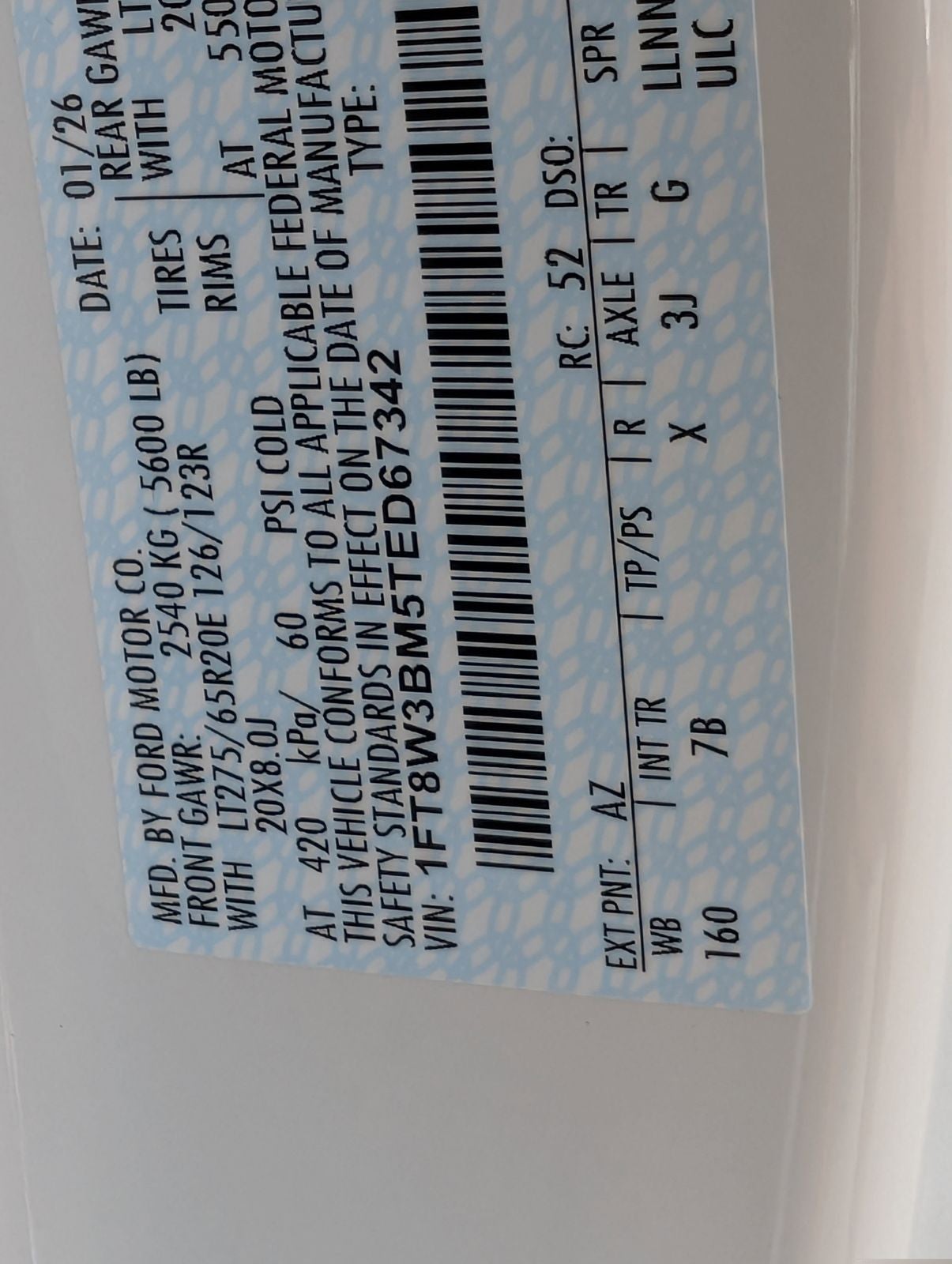 - Front Tire Size: LT275/65SR20