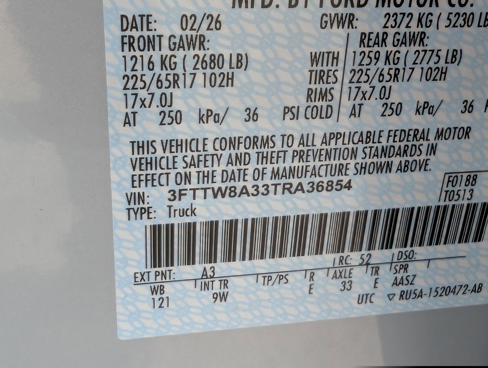 3FTTW8A33TRA36854