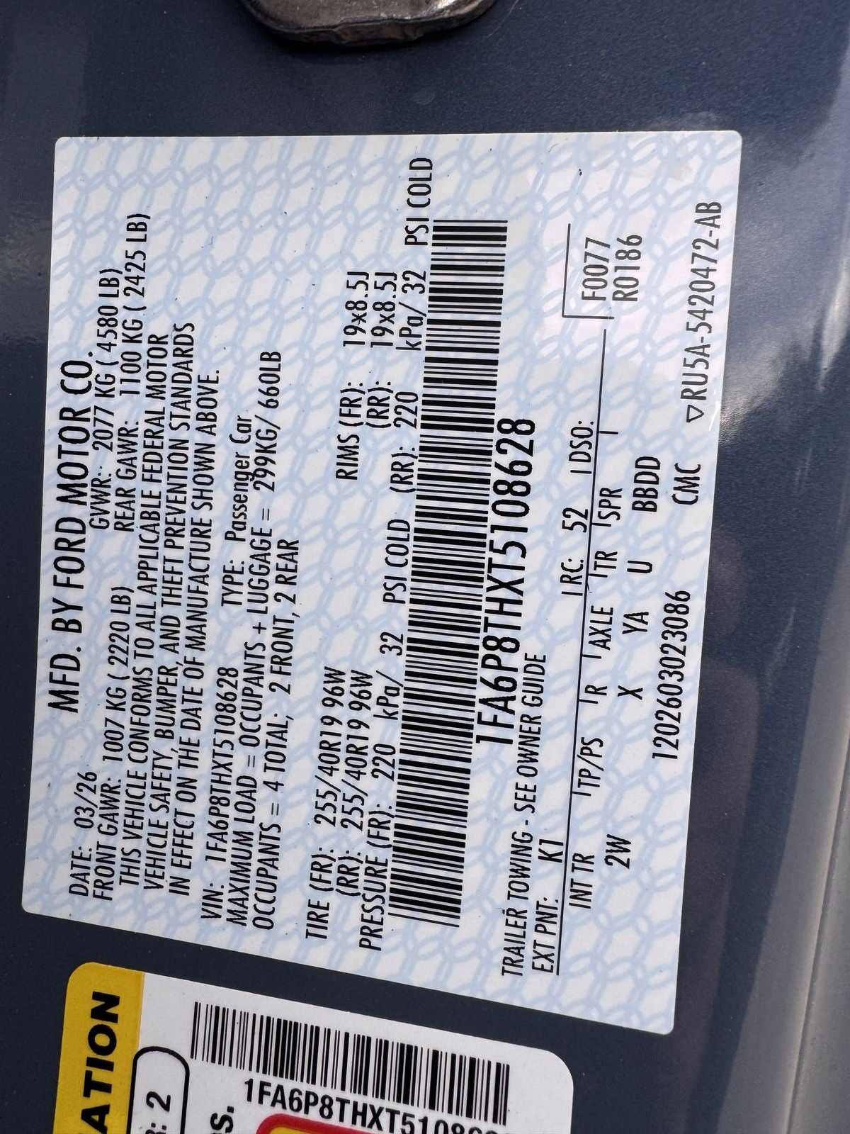 - Vehicle Name: Ford Mustang