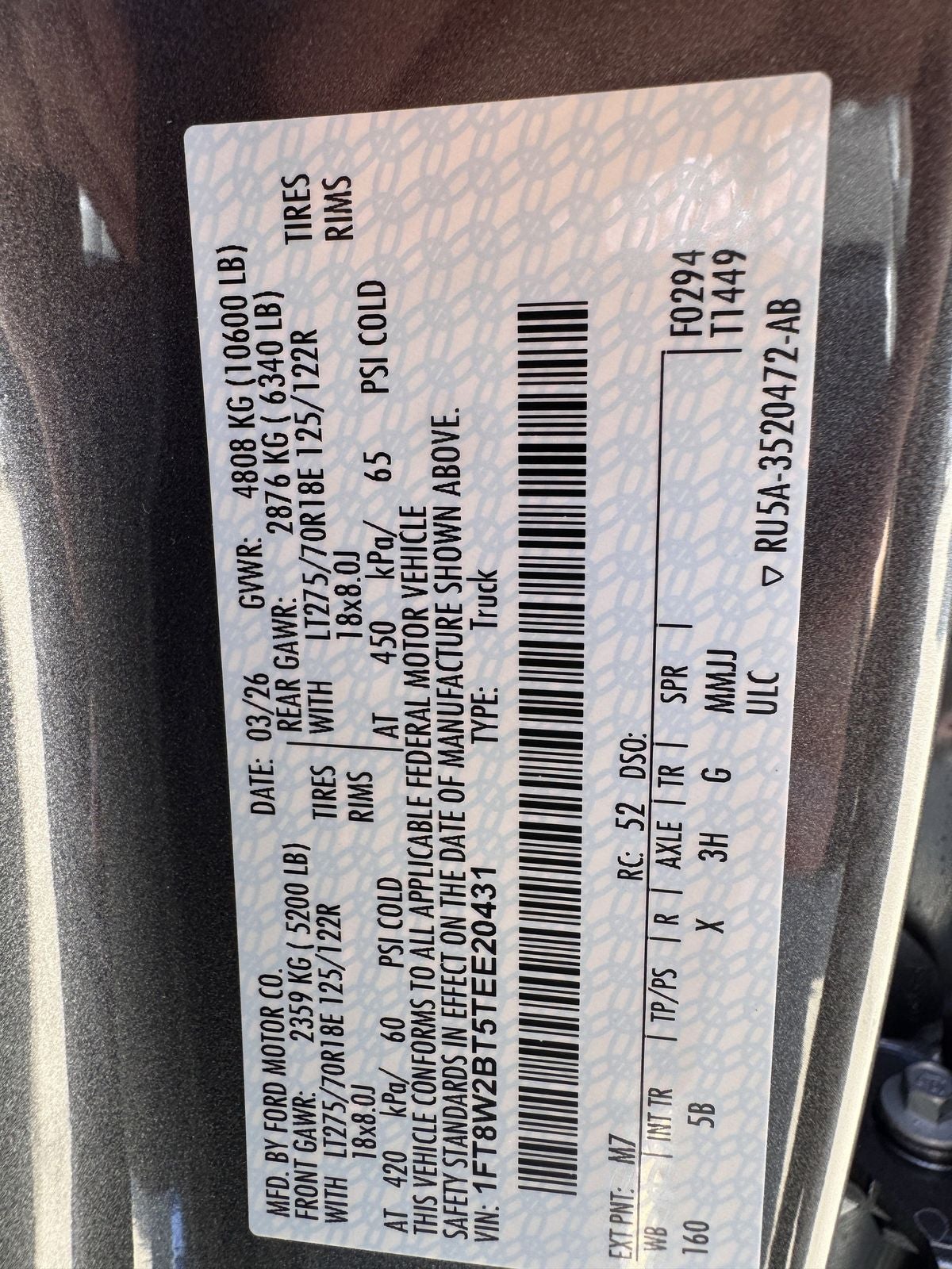 - GVWR: F-250 >10K Package