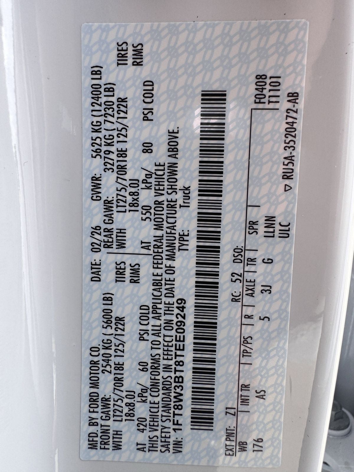 - Front Tire Size: LT245/75SR17