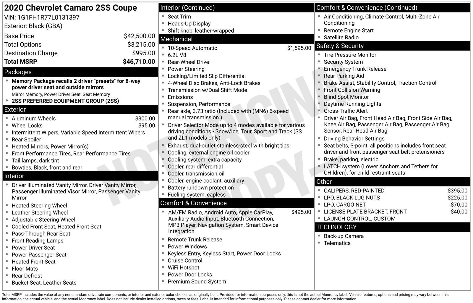 This Camaro is CarBravo Certified, meaning it has completed a comprehensive inspection and includes manufacturer-backed limited warranty coverage and roadside assistance.