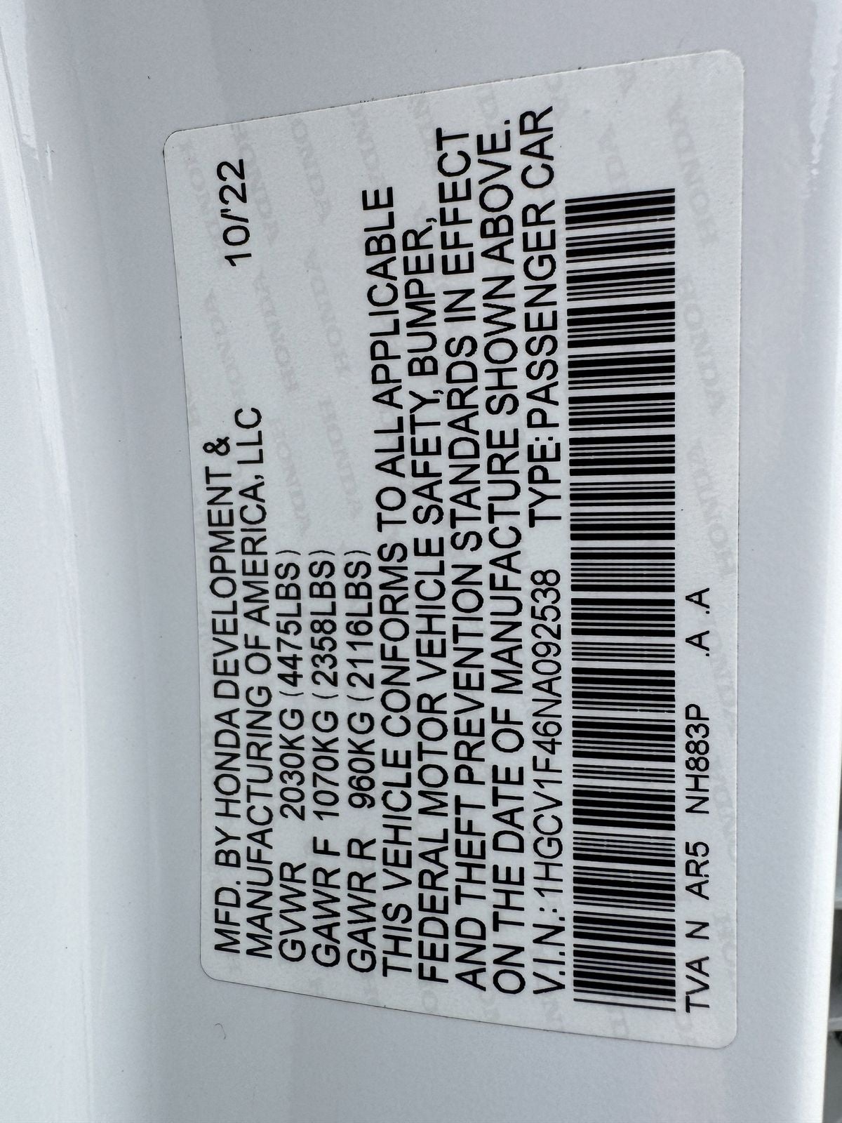 1HGCV1F46NA092538