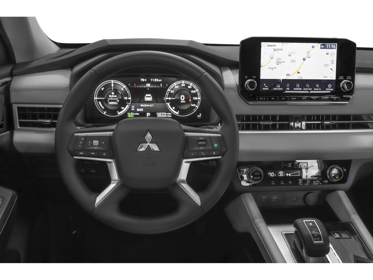 - Radio: AM/FM 9" Smartphone Link Display Audio -inc: navigation system, Apple CarPlay and Android Auto, SiriusXM satellite radio w/90 day SXM All Access and SXM Traffic & Travel Link subscription, HD Radio, Mitsubishi Connect w/safeguard and remote services and 24 month free trial (mobile app enrollment required), steering wheel audio and phone controls w/voice recognition, front USB-C and USB-A port, 6 speakers and Bluetooth wireless technology