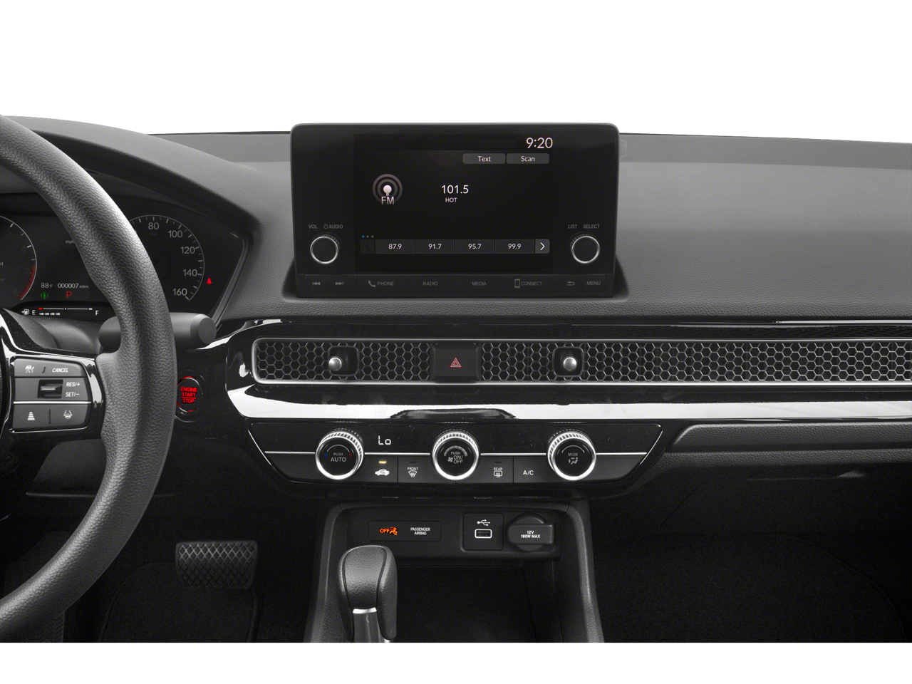- Radio: 160-Watt Audio System -inc: 4 speakers, 7" color touchscreen, Bluetooth HandsFreeLink and streaming audio, HondaLink, SMS text message function (Your wireless carrier's rate plans apply, State or local laws may limit use of texting feature.), Speed-Sensitive Volume Compensation (SVC), Radio Data System (RDS), Apple CarPlay and Android Auto compatibility and 2.5-amp USB smartphone/audio interface port in front console