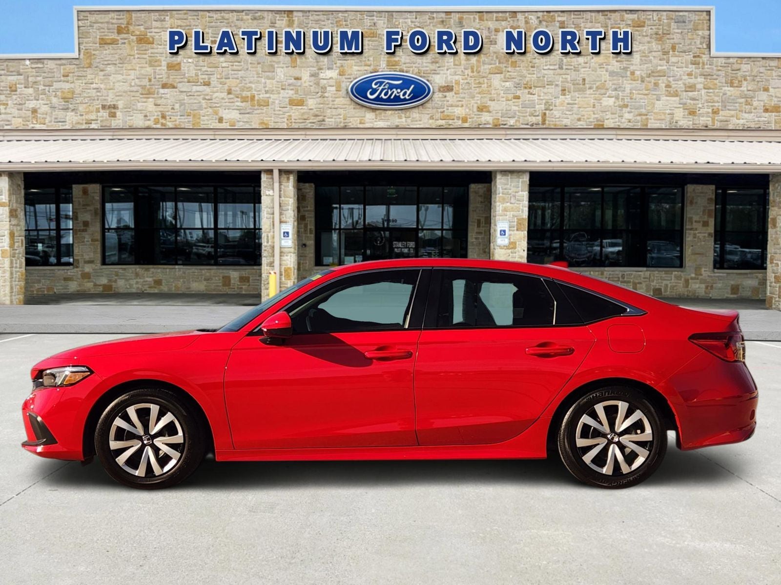 This 2024 Honda Civic LX in Rallye Red comes with the following features: 2.0L I4 DOHC 16V i-VTEC CVT FWD Civic LX, Ford Blue Advantage: Blue Certified Certified, 4D Sedan, 2.0L I4 DOHC 16V i-VTEC, CVT, FWD, Rallye Red, Black Cloth, 16 Wheels w/Full Covers, 4 Speakers, 4-Wheel Disc Brakes, ABS brakes, Adaptive Cruise Control: Adaptive Cruise Control (ACC) with Low-Speed Follow, Air Conditioning, AM/FM radio, Apple CarPlay/Android Auto, Auto High-beam Headlights, Automatic temperature control, Brake assist, Bumpers: body-color, Cloth Seating Surfaces, Delay-off headlights, Driver door bin, Driver vanity mirror, Dual front impact airbags, Dual front side impact airbags, Electronic Stability Control, Emergency communication system: HondaLink, Exterior Parking Camera Rear, Four wheel independent suspension, Front anti-roll bar, Front Bucket Seats, Front Center Armrest, Front reading lights, Fully automatic headlights, Illuminated entry, Knee airbag, Low tire pressure warning, Occupant sensing airbag, Outside temperature display, Overhead airbag, Panic alarm, Passenger door bin, Passenger vanity mirror, Power door mirrors, Power steering, Power windows, Radio data system, Radio: 160-Watt Audio System, Rear anti-roll bar, Rear side impact airbag, Rear window defroster, Remote keyless entry, Security system, Speed control, Speed-sensing steering, Steering wheel mounted audio controls, Tachometer, Telescoping steering wheel, Tilt steering wheel, Traction control, and Trip computer. Certified. Odometer is 13841 miles below market average!
