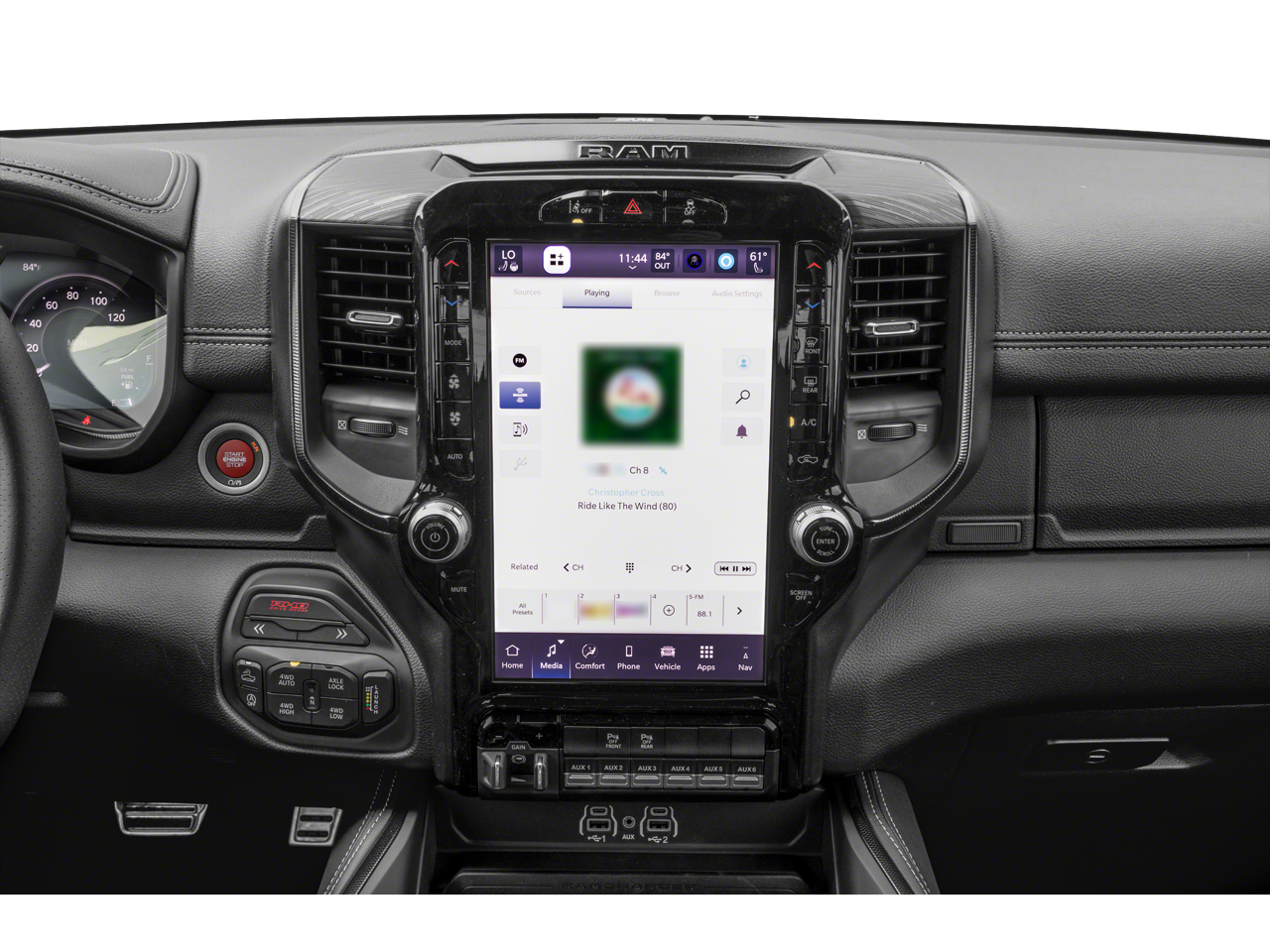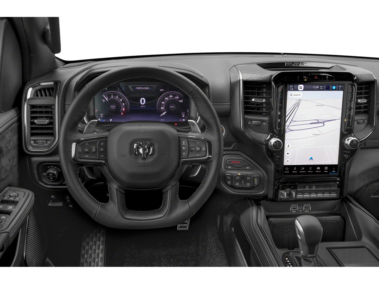 This 2025 Ram 1500 RHO comes nicely equipped with the following Quick Order Package 22Y RHO, RHO Level 1 Equipment Group (12-Way/1-Way Trailer Connector, 14.4 Touchscreen Display, 240 Amp Alternator, 4G LTE Wi-Fi Hot Spot, Apple CarPlay, Connected Travel & Traffic Services, Connectivity - US/Canada, Driver Power Seat Back Massage, Driver Seat Memory, Driver/Passenger Wrapped Assist Handles, Drowsy Driver Detection, Dual Wireless Charging Pad, Evasive Steer Assist, Exterior Mirrors w/Memory, Front Passenger Interactive Display, Front Passenger Power Seat Back Massage, Full Length Premium Upgraded Floor Console, Google Android Auto, GPS Navigation, Hands-Free Active Driving Assist System, harman/kardon 19 Speaker Premium Sound, HD Radio, Heads-Up Display, Heated Second Row Seats, Integrated Voice Command w/Bluetooth®, Intersection Collision Assist System, Leather/Carbon Flat-Bottom Steering Wheel, LED CHMSL Lamp, Luxury Front Door Trim Panel, Power Adjustable Pedals w/Memory, Power Tailgate, Premium Wrapped I/P Bezel, Radio: Uconnect 5 Nav w/14.4 Display, Radio/Driver Seat/Mirrors/Pedals Memory, Rain Sensitive Windshield Wipers, Real Carbon Fiber Interior Accents, Rear 60/40 Folding Split Recline Seat, Smartphone As A Key Capable, Surround View Camera System, Traffic Sign Recognition, USB Host Flip, Ventilated Front Seats, and Ventilated Rear Seats), 10 Speakers, 3.92 Rear Axle Ratio, 4-Wheel Disc Brakes, ABS brakes, Adaptive suspension, Adjustable pedals, Air Conditioning, Alloy wheels, AM/FM radio: SiriusXM with 360L, Apple CarPlay/Android Auto, Auto High-beam Headlights, Auto Power-Folding Mirrors, Auto-dimming door mirrors, Auto-Dimming Exterior Driver Mirror, Auto-dimming Rear-View mirror, Automatic temperature control, Brake assist, Compass, Delay-off headlights, Driver door bin, Driver vanity mirror, Dual front impact airbags, Dual front side impact airbags, Electronic Stability Control, Exterior Mirrors Courtesy Lamps, Exterior Mirrors w/Heating Element, Exterior Mirrors w/Supplemental Signals, Flareside Box, Front anti-roll bar, Front Bucket Seats, Front Center Armrest w/Storage, Front dual zone A/C, Front fog lights, Front reading lights, Front wheel independent suspension, Fully automatic headlights, Garage door transmitter, Heated door mirrors, Heated front seats, Heated steering wheel, Illuminated entry, Leather Shift Knob, Leather steering wheel, Leather Trimmed Bucket Seats, Low tire pressure warning, MOPAR Off-Road Style Running Boards, Navigation System, Occupant sensing airbag, Outside temperature display, Overhead airbag, Overhead console, Panic alarm, ParkView Rear Back-Up Camera, Passenger door bin, Passenger vanity mirror, Power door mirrors, Power driver seat, Power passenger seat, Power steering, Power windows, Radio data system, Radio: Uconnect 5 Nav w/12.0 Display, Rear reading lights, Rear seat center armrest, Rear step bumper, Rear window defroster, Remote keyless entry, Security system, Speed control, Split folding rear seat, Sport steering wheel, Steering wheel mounted audio controls, Tachometer, Telescoping steering wheel, Tilt steering wheel, Traction control, Trip computer, Turn signal indicator mirrors, Variably intermittent wipers, Voltmeter, Wheels: 18 x 9 Bead-Lock Aluminum, and Wheels: 18 x 9 Black Paint/Polish Aluminum. Odometer is 3426 miles below market average!