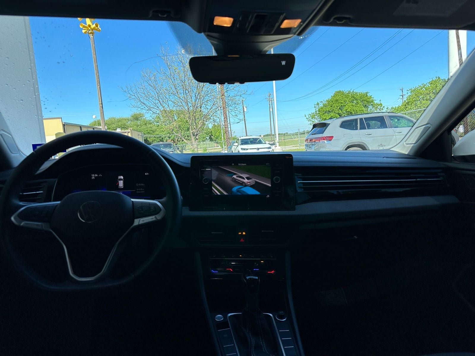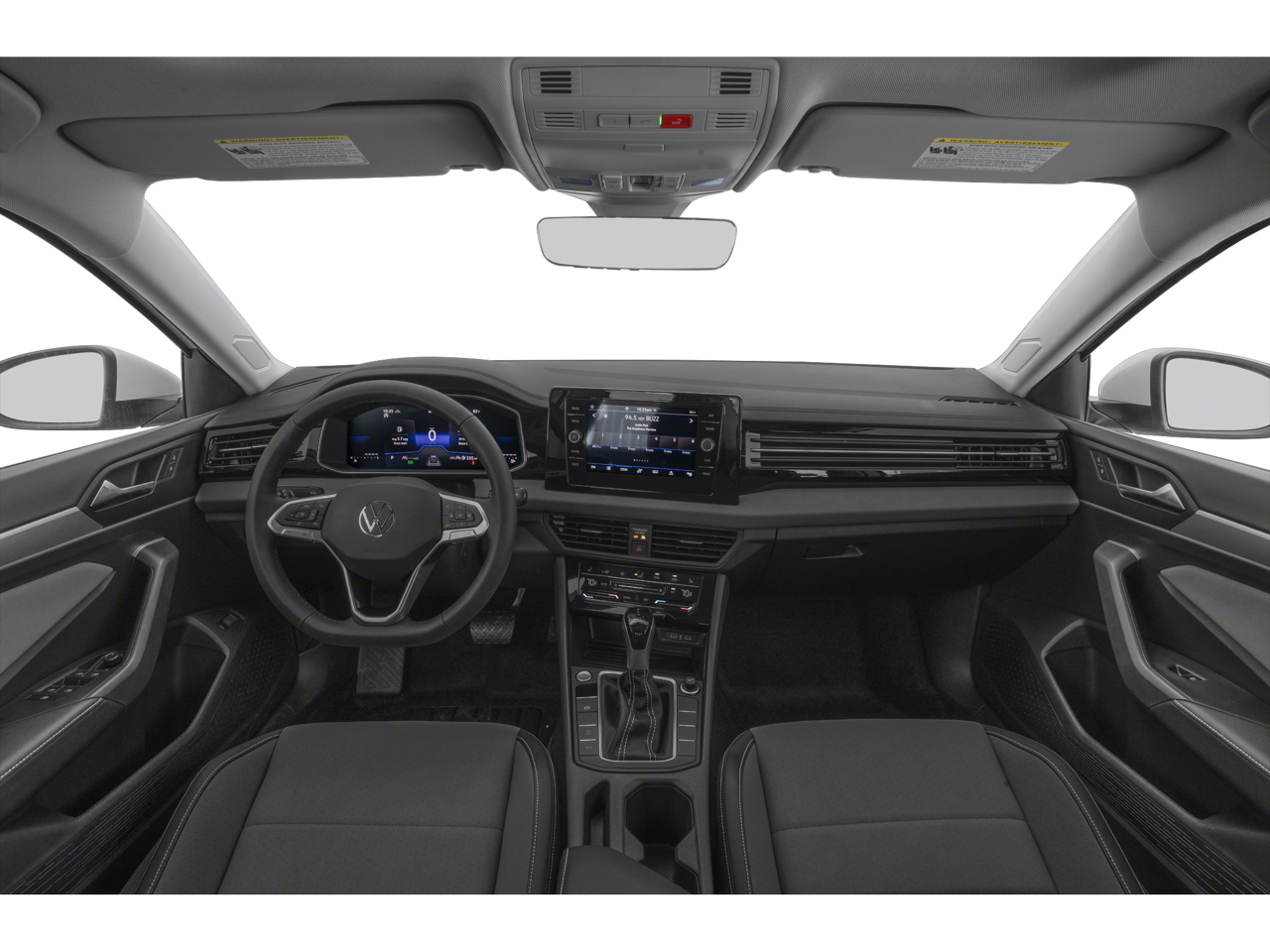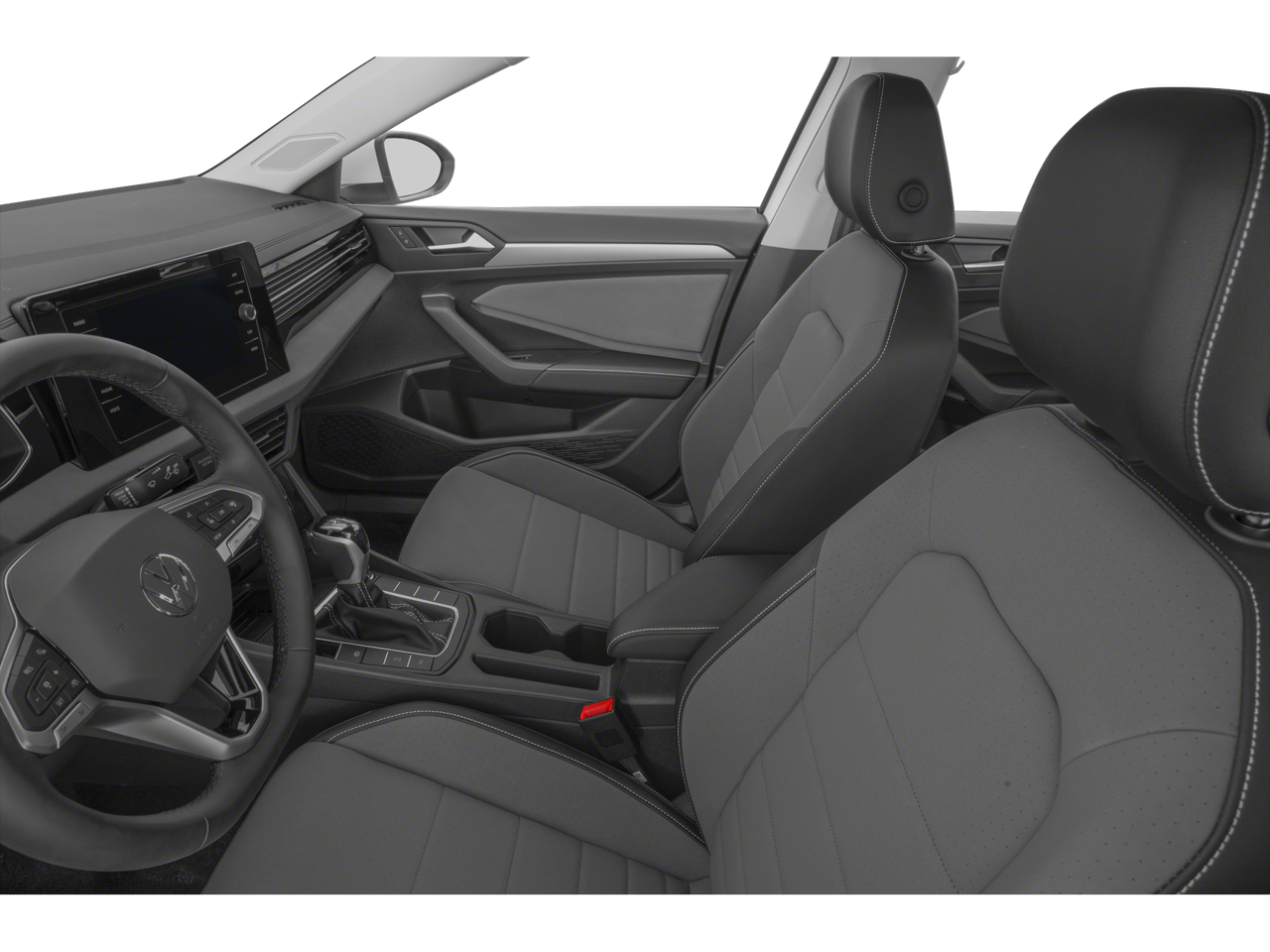 This 2025 Volkswagen Jetta 1.5T SE in Monument Gray comes with the following features: 1.5L I-4 DI DOHC Turbocharged 8-Speed Automatic with Tiptronic FWD 18 Alloy wheels, 4-Wheel Disc Brakes, 6 Speakers, ABS brakes, Active Blind Spot Monitor, Air Conditioning, AM/FM radio: SiriusXM with 360L, Auto-dimming Rear-View mirror, Automatic temperature control, Brake assist, Bumpers: body-color, CloudTex & V-Tex Leatherette Seat Trim, Delay-off headlights, Driver door bin, Driver vanity mirror, Dual front impact airbags, Dual front side impact airbags, Electronic Stability Control, Emergency communication system: VW Car-Net Safe & Secure 5-year, Exterior Parking Camera Rear, Front anti-roll bar, Front Bucket Seats, Front Center Armrest, Front dual zone A/C, Front wheel independent suspension, Fully automatic headlights, Heated door mirrors, Heated Front Seats, Heated front seats, Illuminated entry, Leather Shift Knob, Leather steering wheel, Low tire pressure warning, Occupant sensing airbag, Outside temperature display, Overhead airbag, Overhead console, Panic alarm, Passenger door bin, Passenger vanity mirror, Power door mirrors, Power driver seat, Power steering, Power windows, Radio data system, Radio: MIB3 Composition Media w/8 Touchscreen, Rain sensing wipers, Rear anti-roll bar, Rear reading lights, Rear seat center armrest, Rear window defroster, Remote keyless entry, Speed control, Speed-sensing steering, Split folding rear seat, Steering wheel mounted audio controls, Tachometer, Telescoping steering wheel, Tilt steering wheel, Traction control, Trip computer, Variably intermittent wipers, and Wheels: 17 Twin 5-Spoke 2-Tone Machined Alloy.